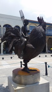 Mujer cabalgando un gallo, escultura de Roberto Fabelo situada en la Plaza Vieja.