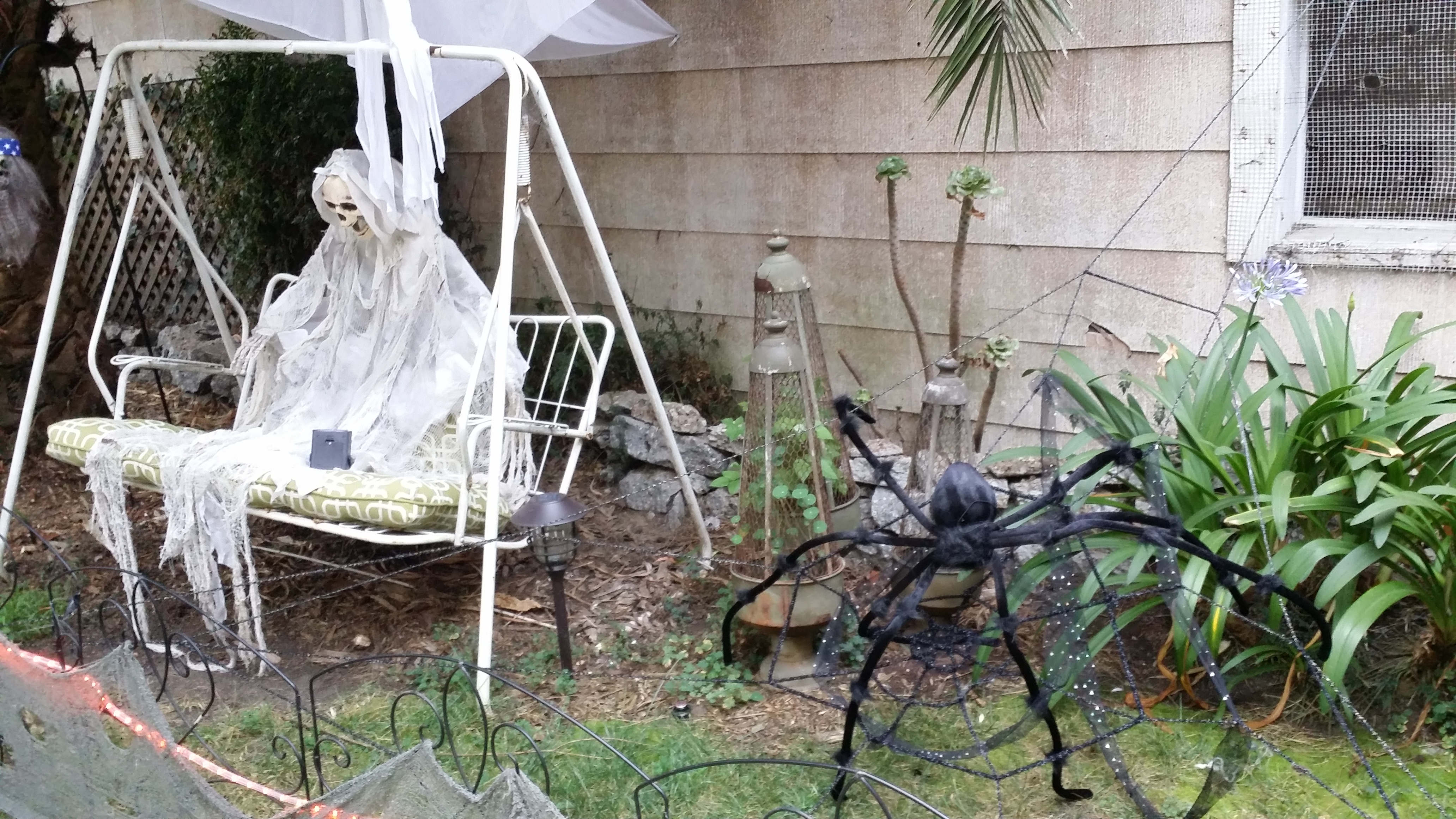 Llevaba varios meses observando la casa desde la acera, primero con sorpresa, luego con admiración y finalmente con verdadera curiosidad. Ni una sola vez la puerta se mostró entreabierta, o las ventanas corridas, o las cortinas en una posición diferente que delatara un ápice de presencia humana. Sin embargo, la decoración del patio cambiada con cada temporada. La bruja de tamaño humano fue el detonante. Me di cuenta que hacía ya un año que recorría el vecindario al menos cuatro veces por semana y ya había visto calabazas talladas con las más creativas sonrisas, muñecos de nieve, luces y árboles de navidad, rojos corazones de enamorados, huevos de pascuas, cojines bordados con mensajes de amor para madres y padres, sombrillas y colgantes de caracoles y caballitos de mar, patrióticas estrellas rojas, blancas y azules y ya estábamos de vuelta a las brujas, los fantasmas y las calaveras. Aunque la casa parecía congelada en su inactividad extemporánea, el patio ululaba vida.
