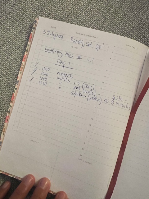 Hoy me he comprado un cuaderno de esos que tienen espacio para poner la fecha encima de cada página y delimitar claramente un día de otro. Una especie de agenda pero no es agenda. Y bajo la fecha de hoy he escrito ciertos objetivos que quisiera alcanzar la mayor parte de los días de cada semana. El número magico es 1000 y la idea es la siguiente: para familiarizarme con las propiedades y los barrios del Área de la Bahía, planeo caminar al menos 1000 metros, crear contenido visual o escrito de al menos 1000 palabras, y ya que estamos en el proceso, leer, al menos otras 1000 palabras, ya sea de temas profesionales o que simplemente que me hagan feliz.